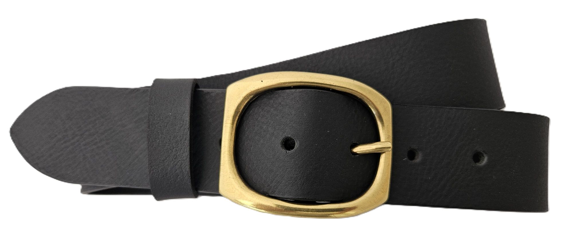 Kožený opasek z lícové buvolí kůže o šíři 39 mm má zabroušené a obarvené hrany,